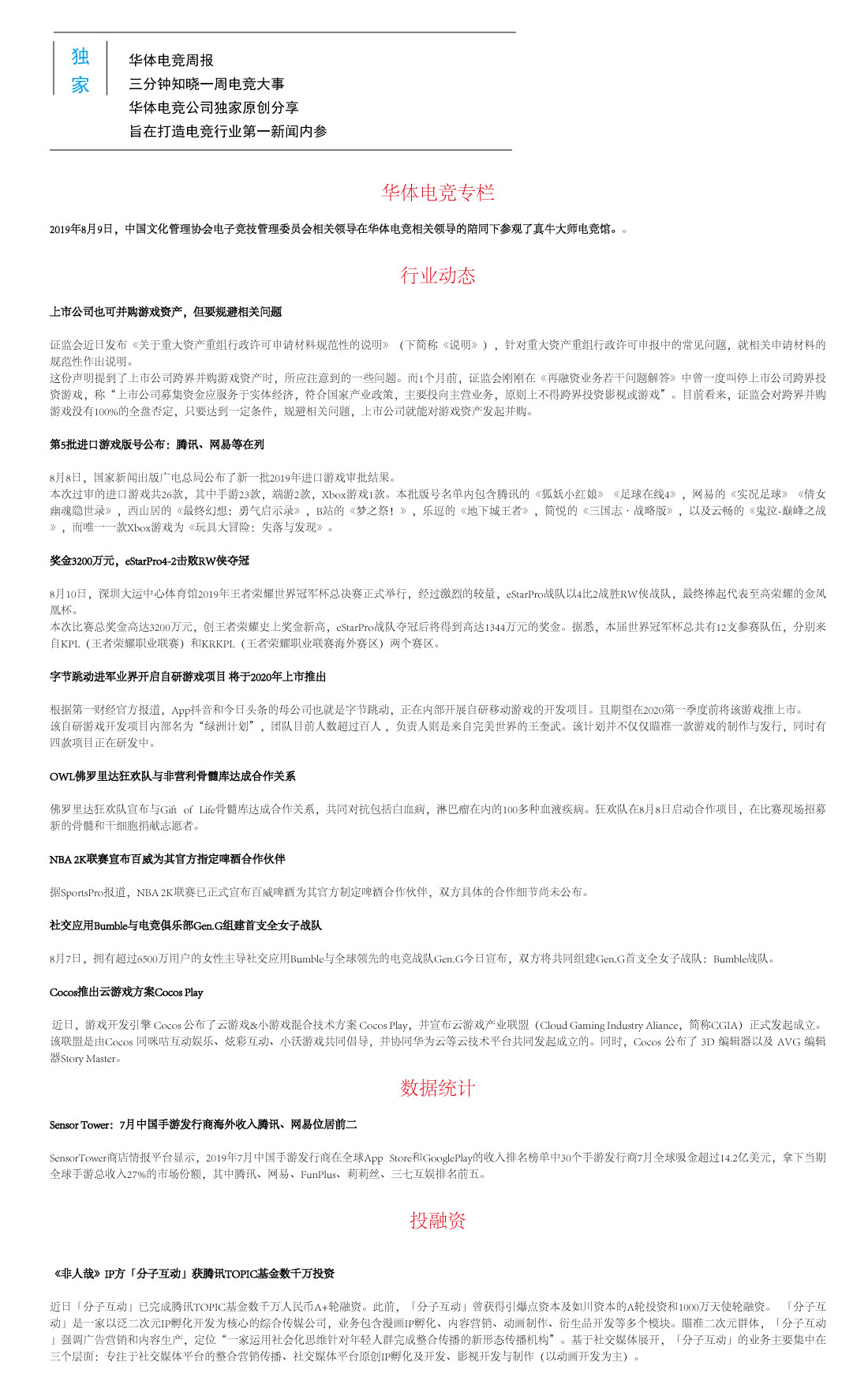 電(diàn)競産業(yè)一(yī)周大(π™dà)事(shì)記(8.06-8.12)HT WEEK-92