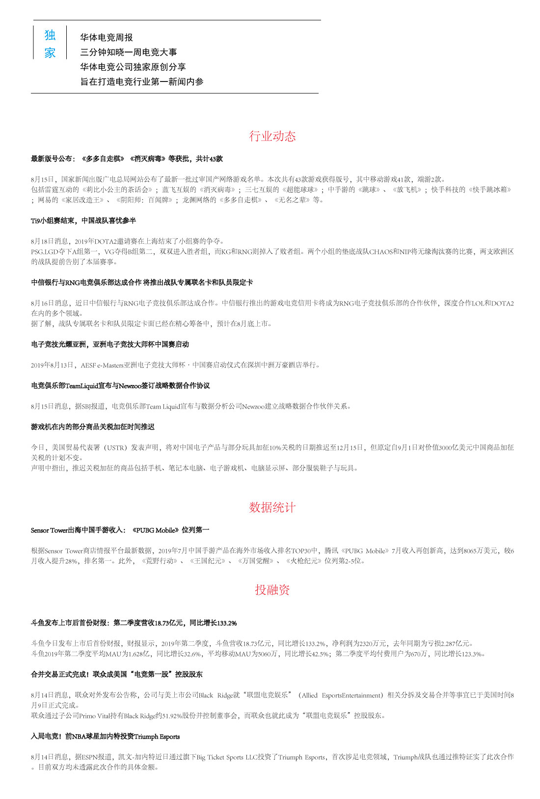 上(shàng)一(yī)篇:電(diàn)競産業(yè)一(yī)周大(dà)事(shì)記(8.20-8÷★.26)HT WEEK-94