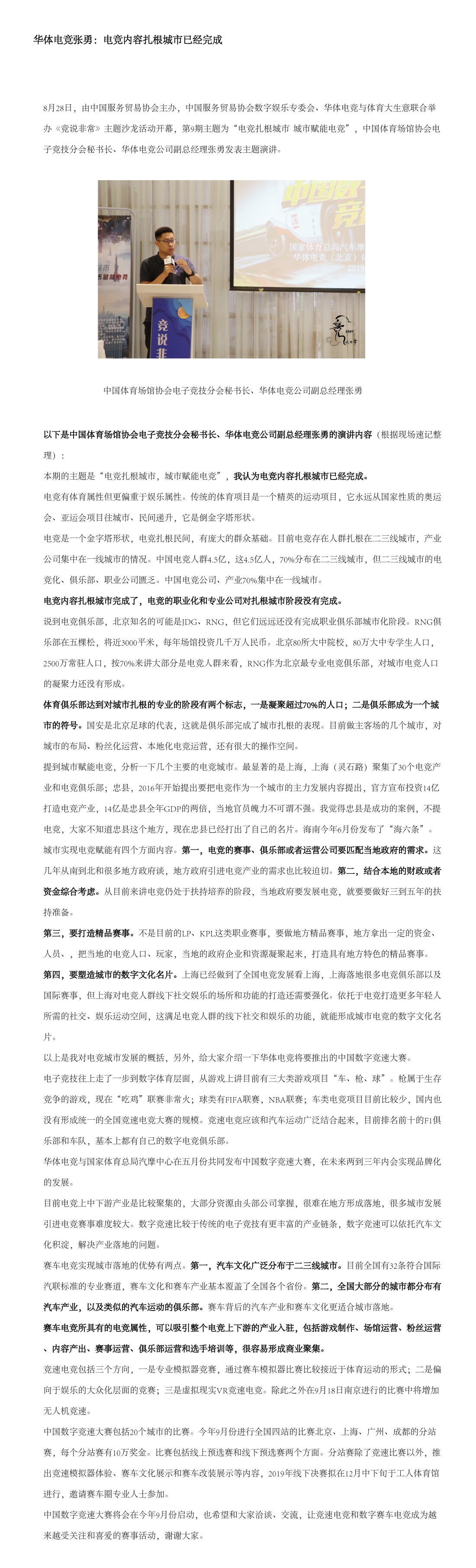 華體(tǐ)電(diàn)競張勇:電(diàn)競內(nèi)容紮根£ π&城(chéng)市(shì)已經完成